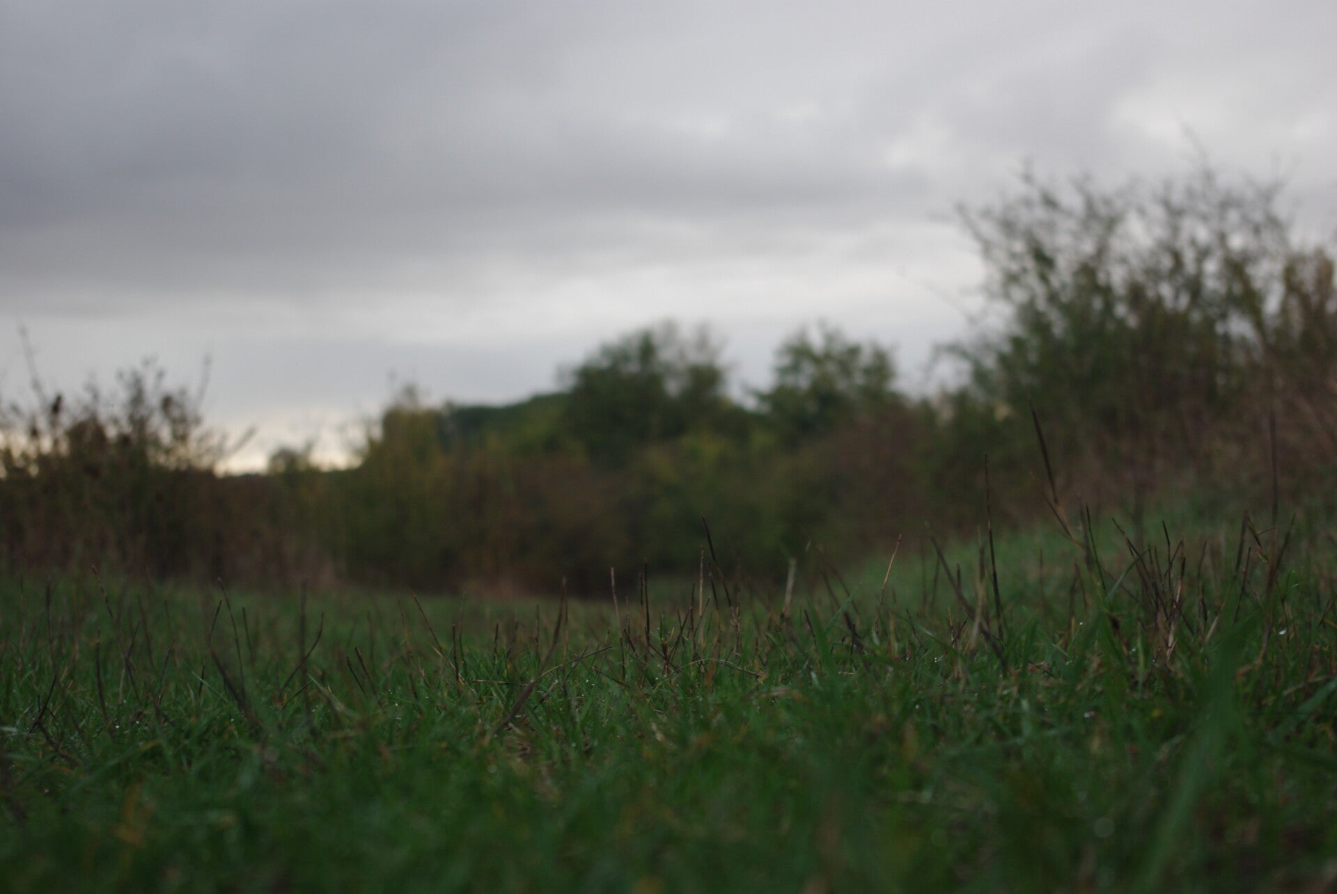 Mon chemin s'étirait à nouveau, me guidant à travers champs et un sous-bois léger. Progressivement, la terre meuble céda la place à un sentier herbeux et moelleux. Cependant, le ciel, déjà bas et uniforme, virait au gris le plus profond et ne tarda pas à laisser tomber quelques premières gouttes de pluie, lourdes et froides, annonçant l'averse imminente.