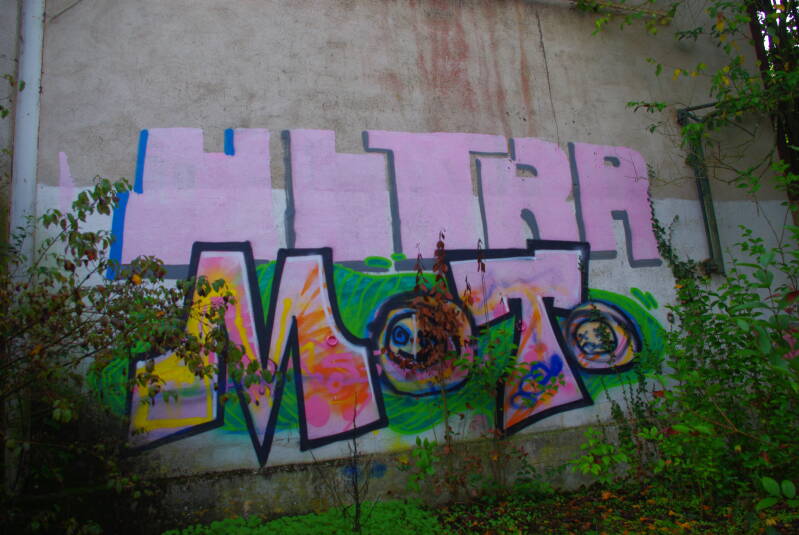 Une immense inscription rose pâle, le mot "ULTRA", dominait, surplombant un graff aux couleurs psychédéliques, vibrant de vert électrique, d'orange et de rose, épelant le mot "MOTO". Ces lettres agressives et joyeuses étaient la signature d'une autre époque, celle où le lieu, déserté par ses anciens propriétaires, était devenu le refuge d'une jeunesse sauvage.